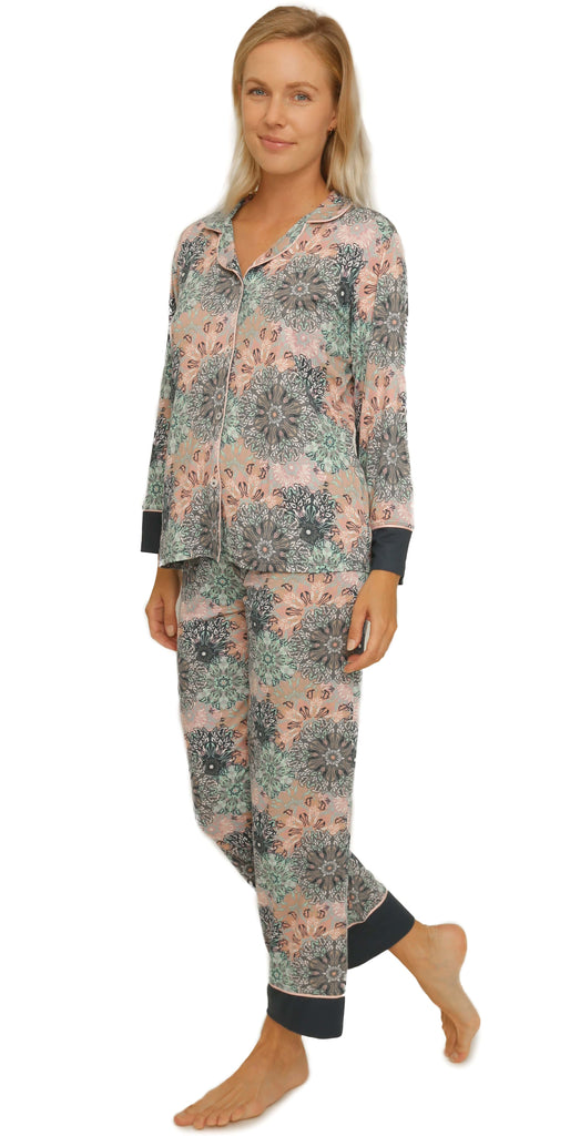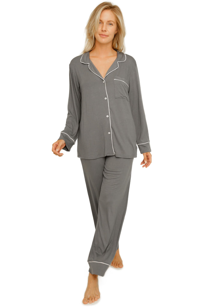 The classic pajama style that remains timeless The One Spirit Long Sleeve Pajama Set brings you comfort with our fabric blend of modal and spandex. With a fabric blend conditioned numerous times, saying this is not soft to your skin would be a lie! With a soft touch and a cozy-hug fit, you will receive the comfort you deserve. With the classic button-down design, it can be the go-to pajamas that you easily switch into the moment you're ready to hit the sheets. Our modal/spandex sets comes in two types of variations: dual colored and in prints!